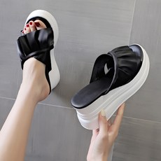 비브온 푹신한 6cm 키높이 통굽 외출용 미용실 여성 슬리퍼 샌들