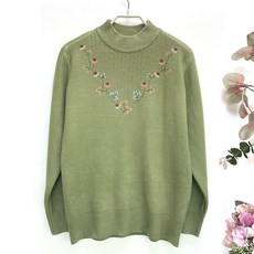 국민할매 할머니옷 엄마옷 자갸드 꽃줄기 핫픽스 반목 니트티셔츠[JS-529] 요양원옷 겨울티