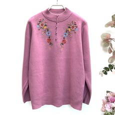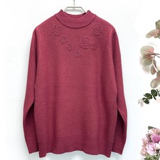 국민할매 할머니옷 융털안감 입체 장미 핫픽스 반목 니트티셔츠[JS-3285] 요양원옷 겨울티