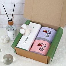 스누피 블럭블랙 고리수건 2장+디퓨저1개 선물세트, 딥포레스트, 보라