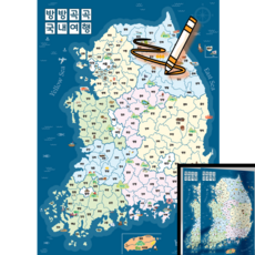우리나라 여행 지도 대형 포스터 핀스티커 포함, 지도 1장