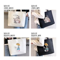 에코백 데일리 캔버스 토트 숄더 백 가방 일러스트 면가방 시장 쇼핑 학생 학원 캔버스가방 1+1 (추가1개랜덤발송)