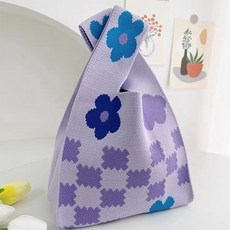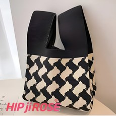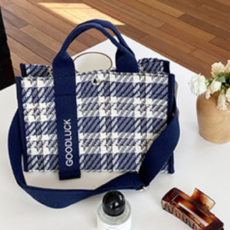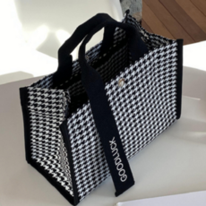 쭈월드 체크무늬 니트 에코백 여성용 데일리 토트백