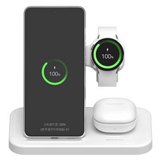 스카이 필 W55S 3in1 스마트폰 갤럭시워치 버즈 20W 고속 무선충전 스탠드, 폴라 화이트, 1개