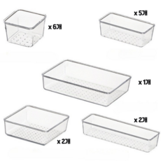 SAIVEINA 다용도 옷장 주방 사무실 화장품 욕실 책상 서랍 정리함 트레이 5가지 사이즈 아크릴 투명 보관 수납함 16피스, 1세트