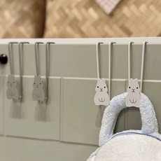 토끼 주방 수납장 스테인레스 도어 훅 2개 세트, 1세트, 화이트