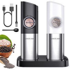 전기 소금 및 후추 그라인더 세트 USB 충전식 자동 밀 조대함 조절 가능 셰이커 LED 조명 리필 가능2팩 그레이지, Black&White, Black&White